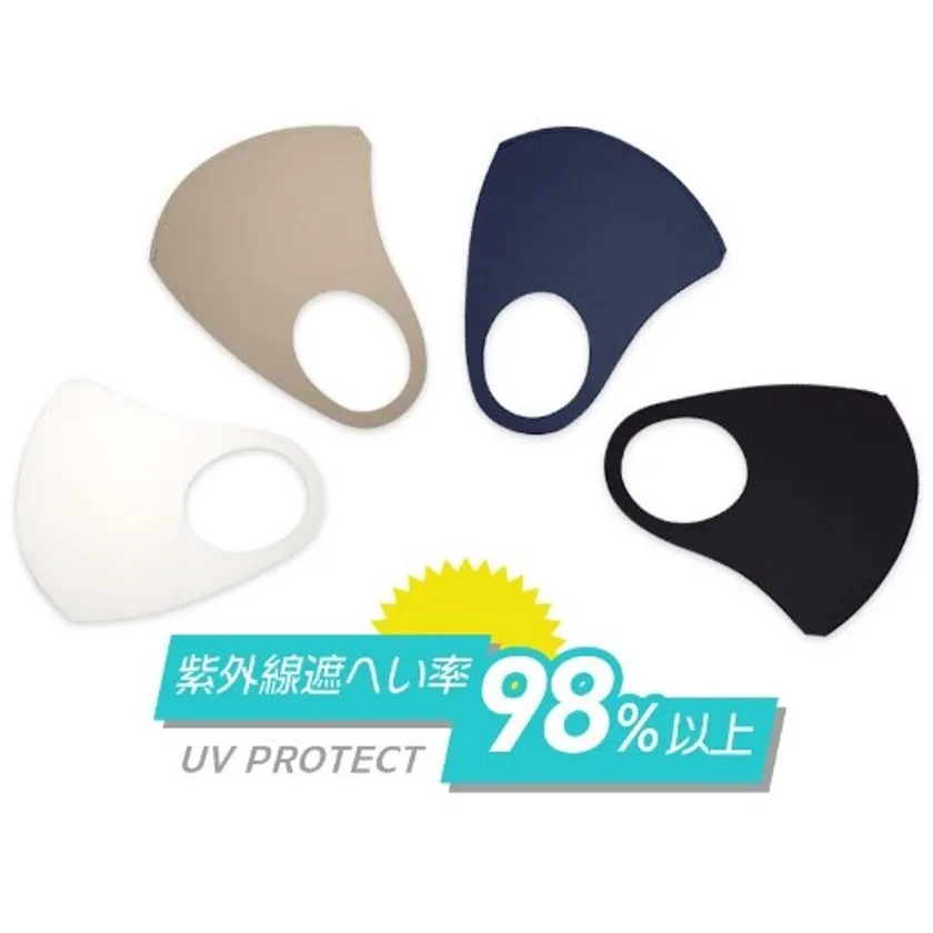 ソフトな風合い(綿混素材)でUVカット機能(紫外線遮へい率99%以上)も備えているので暑い季節にピッタリ。速乾性に優れた布製マスクなので繰り返し洗って使えます。