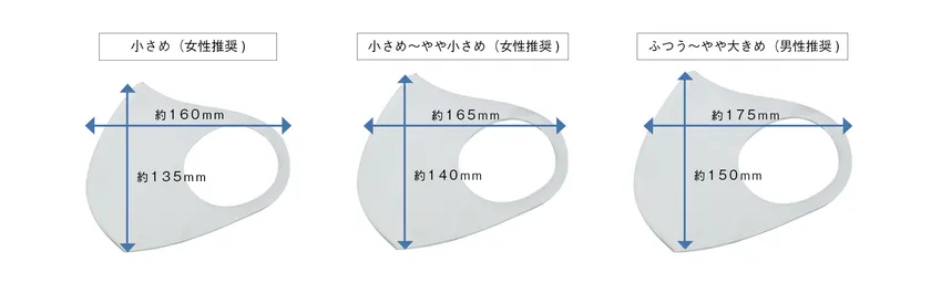 マスクのサイズ:「小さめ~やや小さめ」「ふつう~やや大きめ」の2サイズ展開