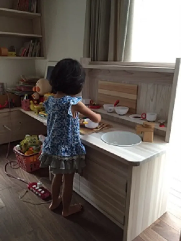 木のぬくもりがたっぷりの子供用ミニキッチン 子供たちは喜んで遊んでくれる。
