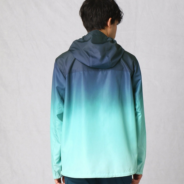 コロナ禍が続く中、エネルギーに溢れ、健康的で前向きなスタイルを提案したいと考えました。そこで、自然をモチーフに、アースカラーを美しくグラデーションした特殊なグラフィックが際立つ、フーデッドブルゾンとTシャツをつくりました。グラデーションは、石川県金沢市のプリント工場で、熱で生地にデザインを染める特殊技術である、昇華転写プリントを施して表現しました。