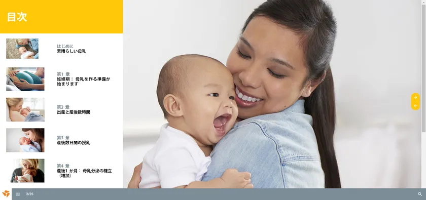 メデラe book~知っておきたい母乳の科学 スマートフォン トップ画面