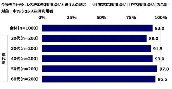 ≫ 「今後もキャッシュレス決済を利用したい」93%、50代では97%