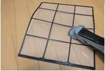 エアフィルターは、空気中のホコリが室内機の内部に入らないようにするための部品です。エアコンを長時間使った分だけエアフィルターにはホコリが堆積します。ホコリをそのままにしておくと、風の通りが悪くなり、消費電力の増加につながります。また、エアフィルターのホコリを放置することで、ホコリがエアフィルターの内側に入りやすくなり、熱交換器の汚れやニオイ、ドレン配管の詰まりにつながる場合もあります。なお、エアフィルターの自動お掃除機能が搭載されたエアコンには、ダストボックスが格納されたタイプもありますので、ダストボックスのお手入れも忘れずに行いましょう。