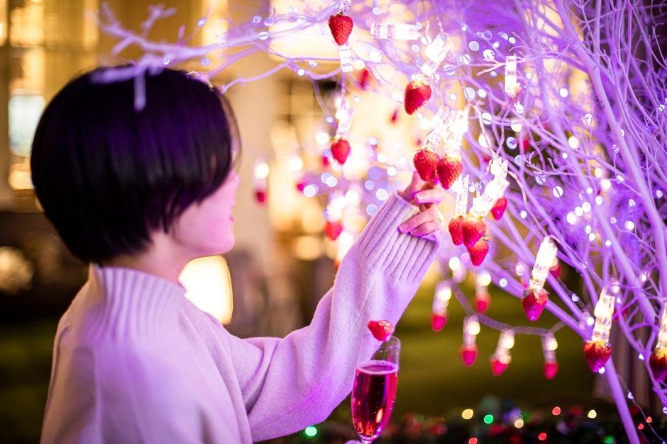 名古屋都心、イルミネーション輝くキラキラ空間で楽しむ“夜のいちご狩り体験(+1500円)”も存分にお楽しみください。