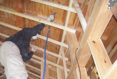 無機物「ホウ酸塩」は揮発・分解が起こらないため、水に濡れるような部材でない限り、5年毎の再処理は不要です。特に、再処理が物理的に難しい壁の中の柱や構造材の処理に適しています。