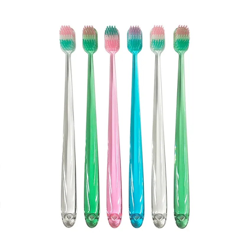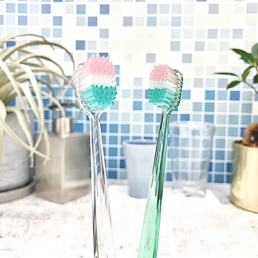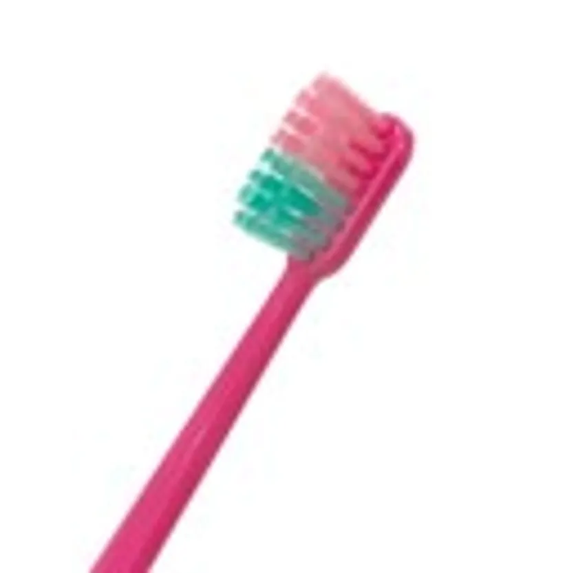 高密度な毛束、薄いヘッド、しなるネックで歯茎の負担を和らげるなどの性能はもちろん、特殊なダイヤ型の断面毛(カクモウ)が歯間までしっかり届くため、歯垢をみるみる取ってつるつるの磨きあがりに。ハンドルにはクリアな素材(PCTA樹脂)を使用し、清潔感を損なわずにトレンドカラーを取り入れました。