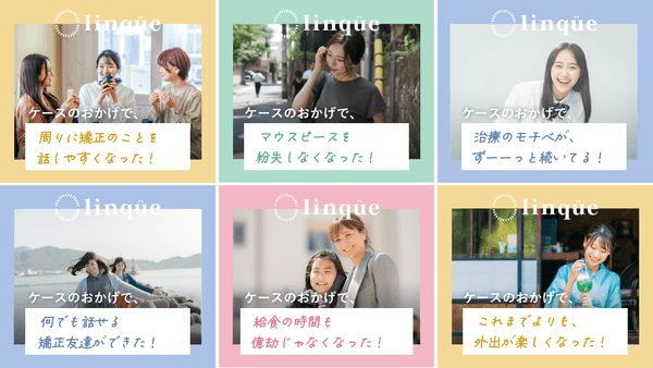 「linqüe」は歯科矯正治療におけるQOL低下及び治療継続率低下を解決すべき目標としています。「歯科矯正中も、楽しい生活が待っている」認識が社会に広がり、「日本全体での歯科矯正率の向上、並びに健康寿命の向上」に貢献できるよう今後も活動していきます。