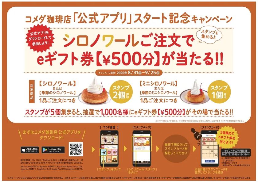 また、公式アプリスタートを記念して、全国のコメダ珈琲店にて8月31日(月)から9月25日(金)まで、シロノワールのスタンプキャンペーンを実施しています。