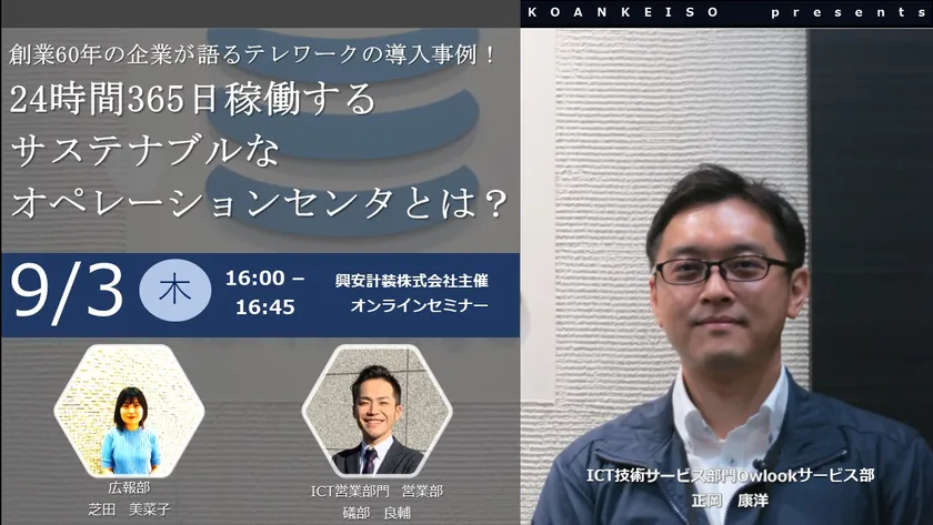 興安計装、無料オンラインセミナー 「創業60年の企業が語る、テレワークの導入事例! 24時間365日稼働するサステナブルな オペレーションセンタとは?」を開催