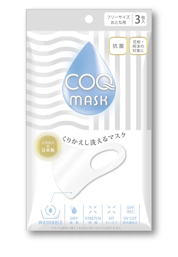 呼吸しやすいマスク登場! 洗って繰り返し使える、柔らか素材でつけ心地快適な 『COQmask』大人用・子供用2サイズで9月18日新発売!