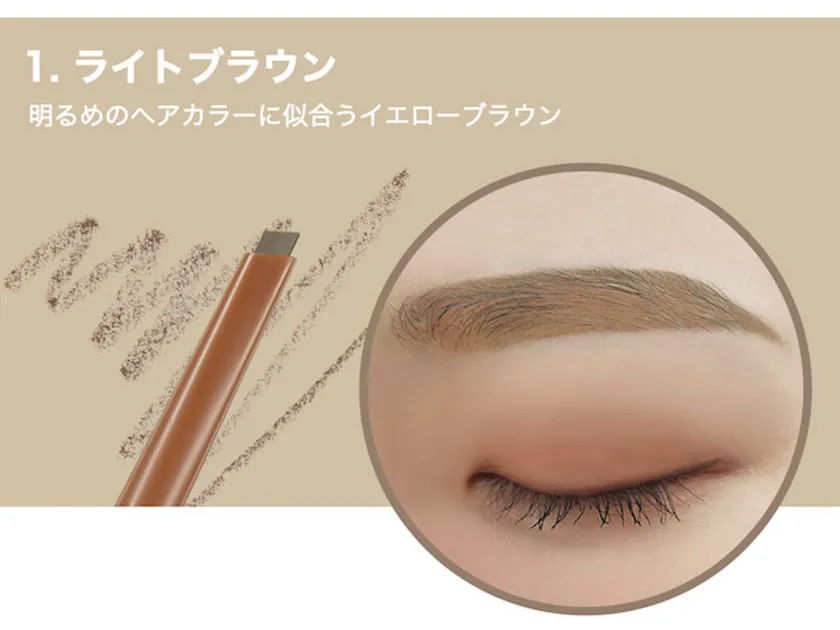 立てても寝かせても自由自在に眉を描ける薄型スリムな三角芯の『エッジドローイングスリムアイブロウ』。