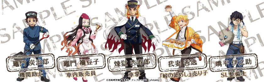 ■「鬼滅の刃×SLぐんま~無限列車大作戦~」限定描き下ろしイラストおよびオリジナルグッズの販売についてJR東日本高崎支社が運行する「SLぐんま」の乗務員等の制服に身を包んだコラボ限定の描き下ろしイラストや、かわいい描き起こしミニキャラクターが登場。これらイラストを使用したオリジナルグッズをコラボ期間中に多数販売予定です。(販売店舗等は、後日イベント特設サイトにて発表いたします。)