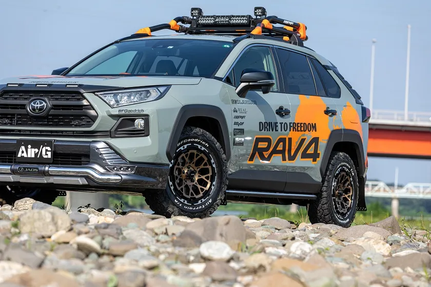 新型「RAV4」、「C-HR」、「CX-5」、「CX-30」などのSUVや、「ランドクルーザープラド」や「ハイラックス」などの4WDに装着可能なサイズ16~17インチ。さらにAir/Gブランド第1弾の「Air/G Massive」では展開のなかったJEEPラングラーに装着可能な17インチなど、豊富なサイズラインナップを用意しました。4WDだけではなく、SUVにも装着可能にすることで、より多くの方にドレスアップを楽しんでいただきたいと考えております。