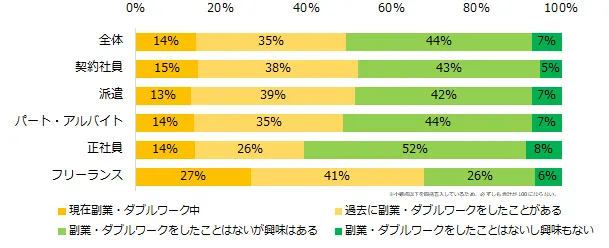 ★ 49%が「副業・ダブルワークの経験がある」と回答。
