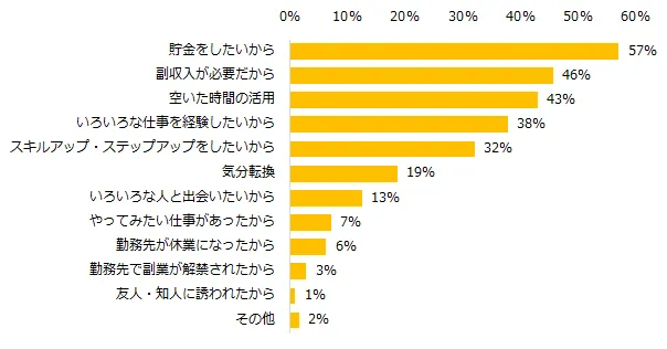 【図2】「現在副業・ダブルワーク中」「過去に副業・ダブルワークをしたことがある」と回答した方に伺います。副業・ダブルワークをしている(したことがある)のはなぜですか?(複数回答可)