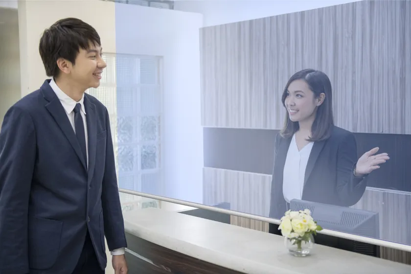 透明な素材なので、視界の妨げにならず、受付や窓口など広範囲の対策やフォーマルな場所の設置にもおすすめです。またジムやコンビニなど間仕切りとしてもご使用いただけます。
