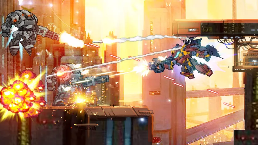 『ハードコア・メカ ファイターエディション』は、RocketPunch Gamesが開発したハイスピード2Dメカアクションゲームです。ロボットゲームが好きなファンにはたまらない、自由度の高いハイスピードなメカバトルが楽しめます。また過去には、東京ゲームショウやゲームメディアより数々の大賞を受賞。ユーザーの皆様に高く評価され、PS4版ではPSNで数週間にわたり連続一位という快挙を果たしています。