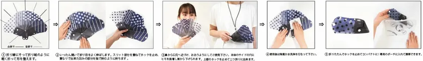 折りたたんでコンパクト、キュートなプリントで日常に取り入れ易いデザインです。ゆるやかなカーブで口元をガードします。株式会社バスコは、飛沫対策として新しいライフスタイルを提案いたします。