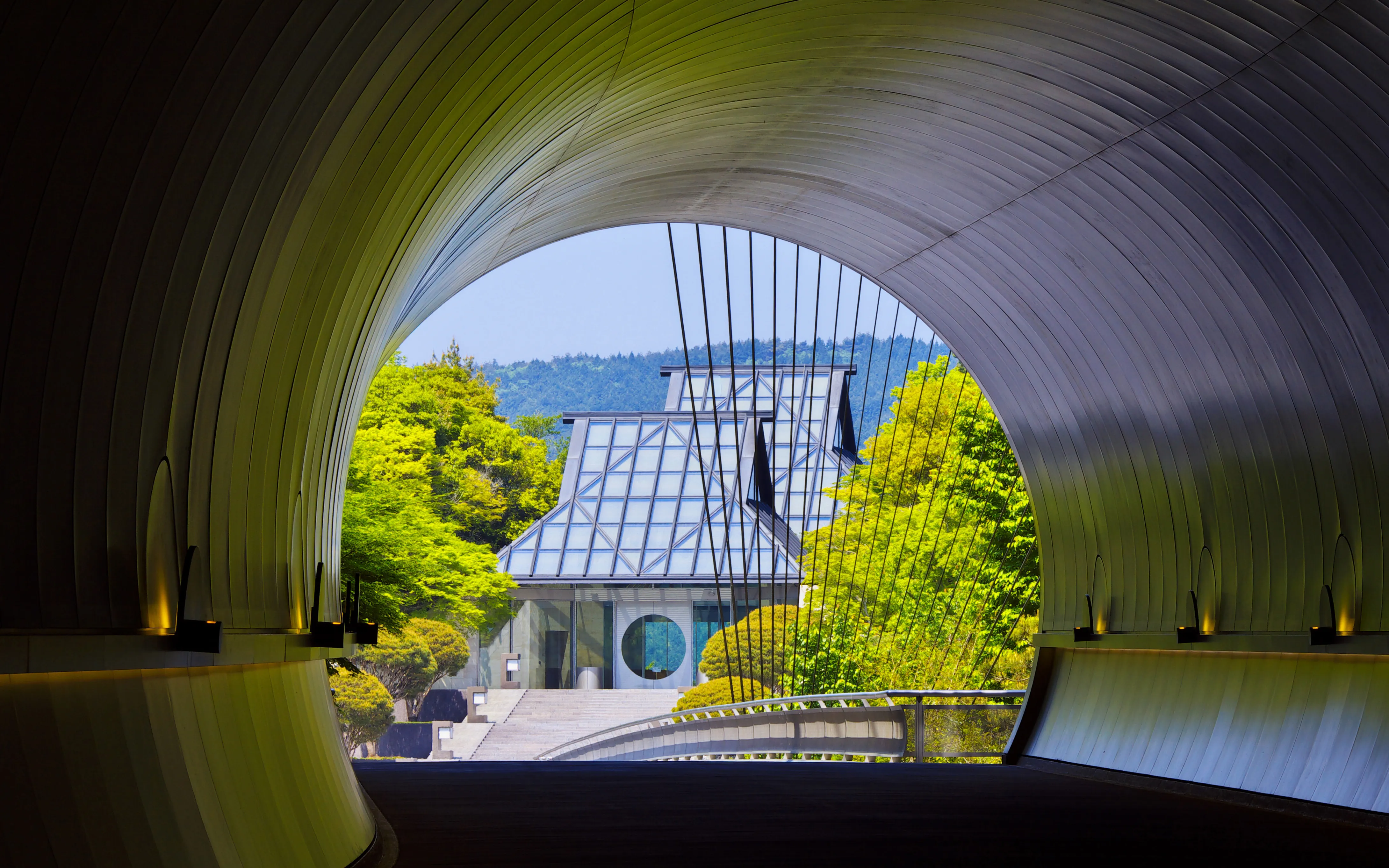 MIHO MUSEUMは1997年11月に琵琶湖の南、信楽の山中に誕生しました。建築設計は、パリ・ルーヴル美術館のガラスのピラミッドを設計したことで知られるI.M.ペイ氏。