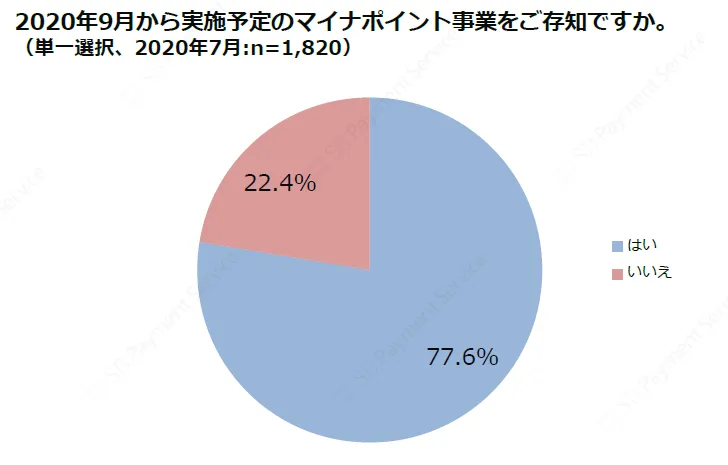 QRコード決済をご存知の方に、2020年9月から実施予定の政府による「マイナポイント事業」について尋ねたところ、77.6%の方が「マイナポイント事業」の実施を認知しており、その中で利用したいという方が49.8%と約半数を占めました。