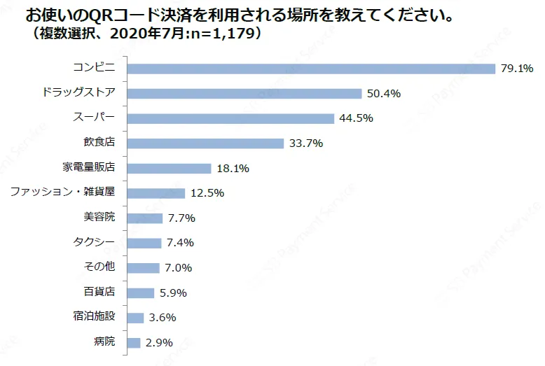 QRコード決済を最も利用する場所第1位は「コンビニ」(79.1%)