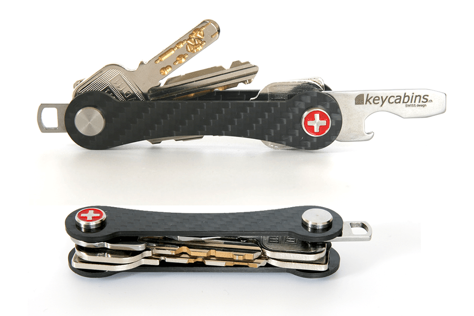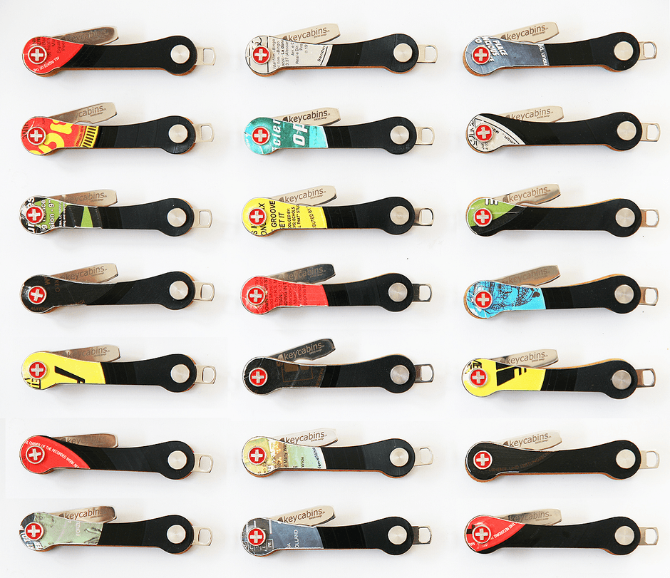 注目すべきは素材。カーボン、アルミニウム、そして、天然木タイプはフローリングになれなかった床材から作られています。(スノーボードとLPレコードから作られたタイプはすでに完売)優れたデザイン性がヨーロッパで高く評価されデザイン賞を受賞。鍵をスイスアーミーナイフのようにスタッキングして収納するので、ジャラジャラしている鍵がスマートな見た目に。また、鍵同士がぶつからなくなるので耳障りなチャリチャリ音から解放されます。