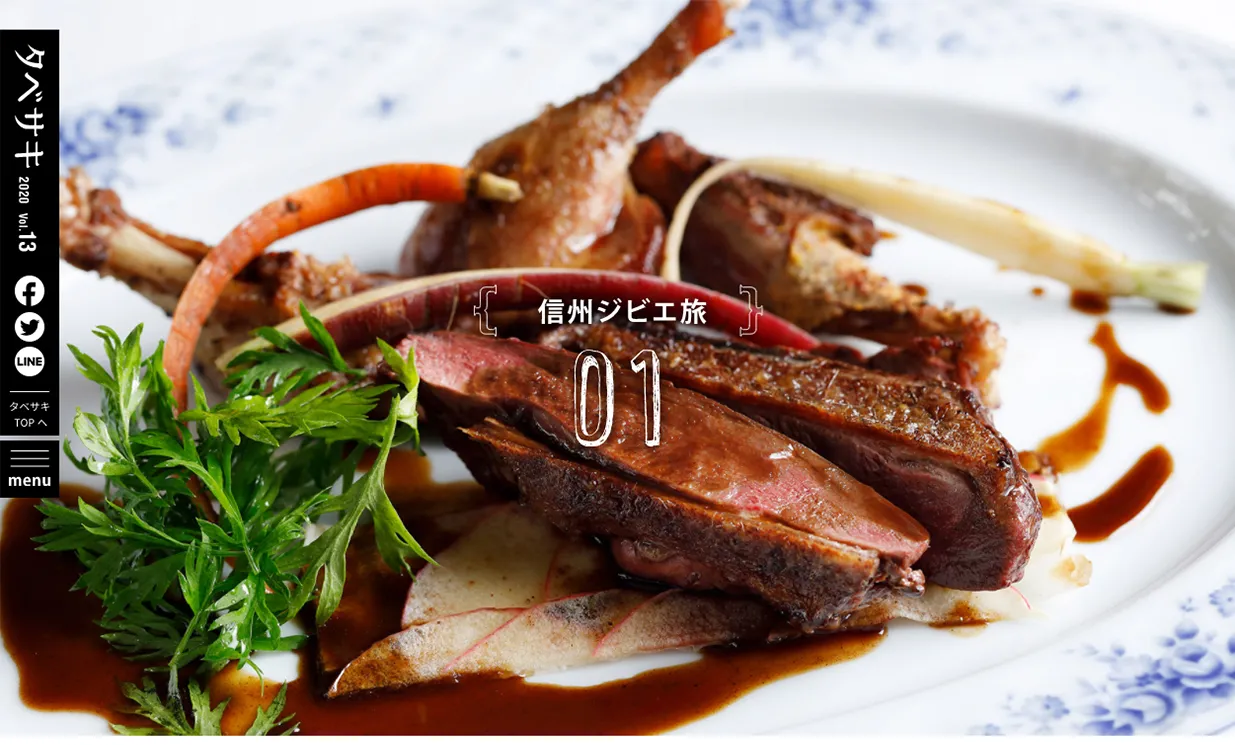 大人の女性に上質な旅時間を届けるウェブマガジン「旅色」が提案する「食」に特化した電子雑誌「タベサキ」。vol.13は、近年その栄養価の高さやヘルシーブームにけん引されて人気の“ジビエ”を特集。豊かな自然が生み出す高品質なジビエを味わえる長野を訪ね、地元の猟師や有名シェフらから、“信州ジビエ”の魅力や歴史背景、さらにとっておきのお店も取材。おいしい話をたっぷりとご紹介します。