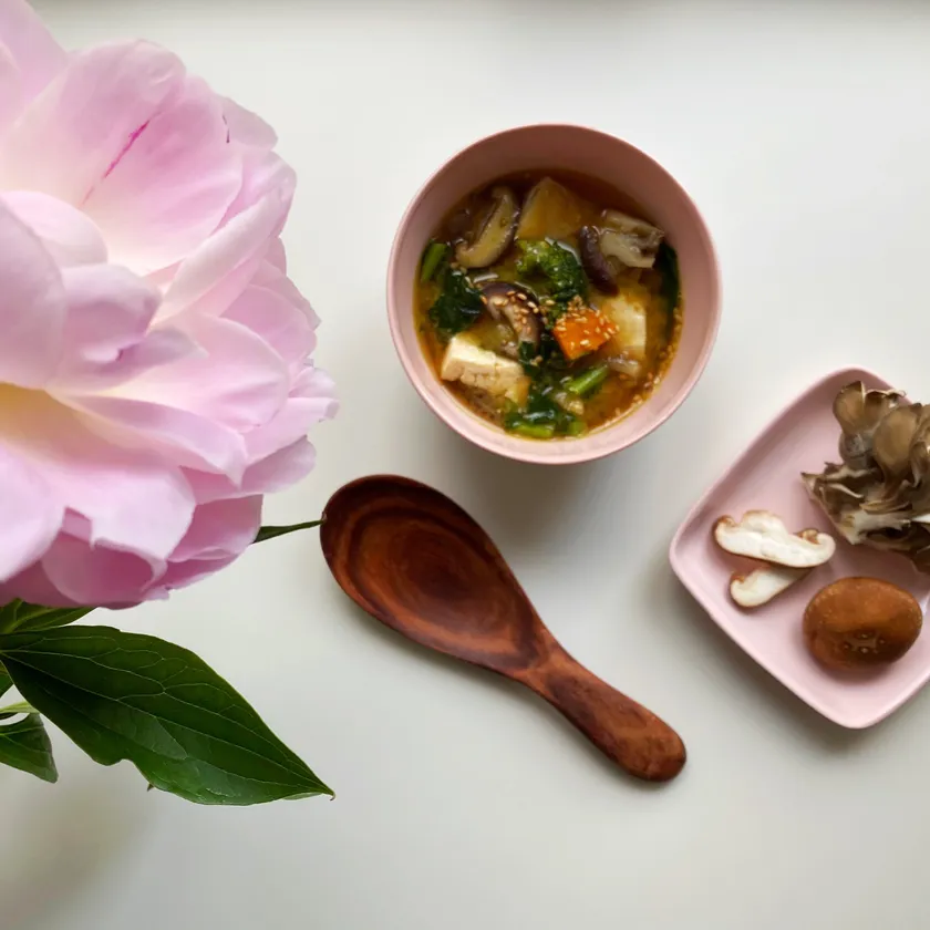 どんな食材とも相性が良いキノコ。冷蔵庫の整理も兼ねて好みの野菜もたっぷり入れて具沢山のお味噌汁にしましょう。オリーブオイルは熱に強いので、いつプラスしてもOKです。