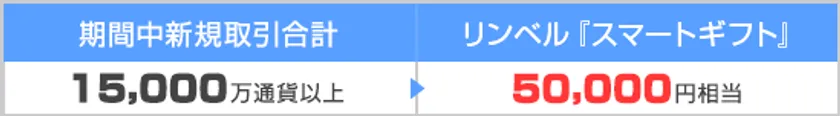 上記に加えて、期間中に新規15,000万通貨以上取引されたお客様には、リンベル『スマートギフト』をプレゼントいたします。