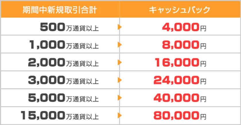 『選べる外貨』でのお取引で、期間中に以下の取引条件を達成されたお客様にキャッシュバックいたします。