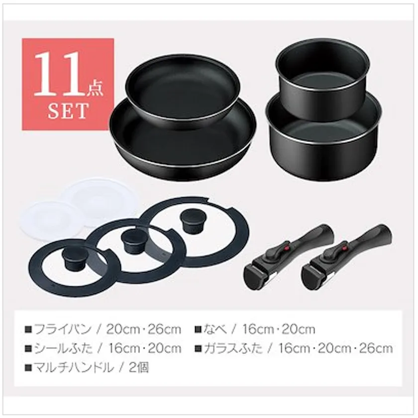 アイリスオーヤマ 取っ手が外せる鍋11点セット