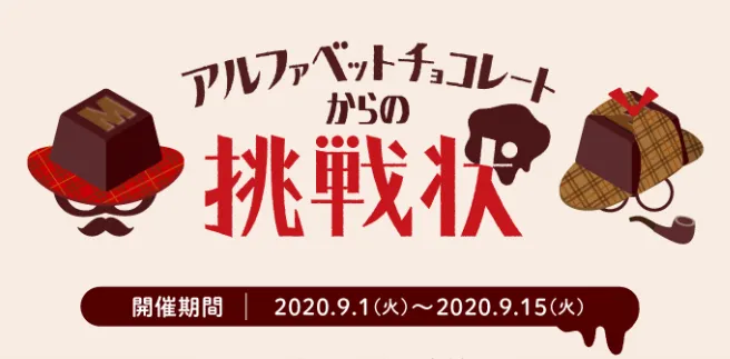「アルファベットチョコレートからの挑戦状」では、様々なメディアで活躍する”謎解き”の仕掛け人・松丸亮吾さんが制作した、アルファベットにちなんだ謎解きを公開します。「アルファベットチョコレート略語大賞」では、「KY(空気が読めない)」「JK(女子高生)」のように、アルファベットを使った新たな略語を募集します。いずれのキャンペーンもTwitterから簡単に応募可能です。また、10月26日を『アルファベットチョコレートの日』として新たに制定し、記念企画も開催します。