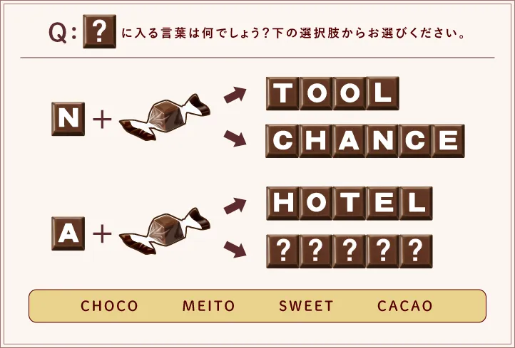 アルファベットとチョコレートが意味する5文字とは一体・・・?ぜひ皆さんも挑戦してみてください!!