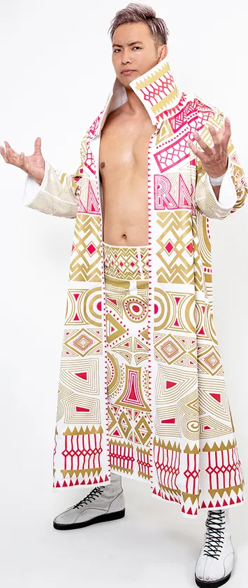 金色に輝くガウンに身を包み、自身の顔が刷り込まれたレインメーカードルが舞い踊る入場シーンは新日本プロレス随一の華やかさを誇る。191cmの恵まれた体格とずば抜けた運動神経に裏打ちされた、打点の高いドロップキックや、一撃必殺のレインメーカーは必見。