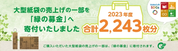 当社では、サステイナブルな社会の実現に貢献するため、ポスターやパネルの持ち運びに便利な大型の紙袋を店頭で販売し、その収益金の一部を紙の原料となる森林資源を循環させ、森林づくりを推進する『緑の募金』へ寄付する取り組みを行っています。