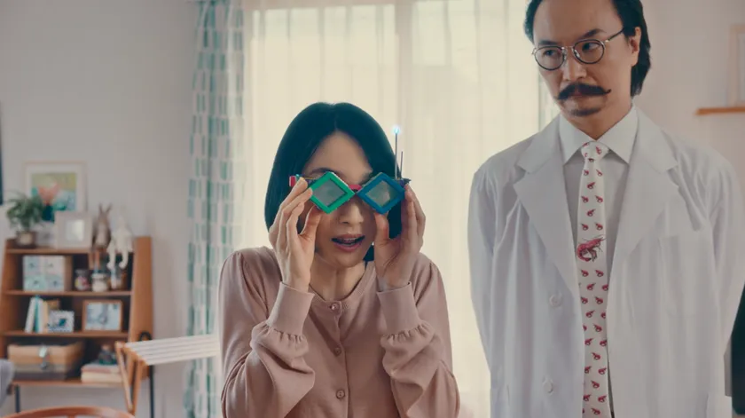 ウルトラハードクリーナー サニプロテクト 見えーるメガネ」篇 左:ピカリ 雅美(母) 右:エビデンス博士