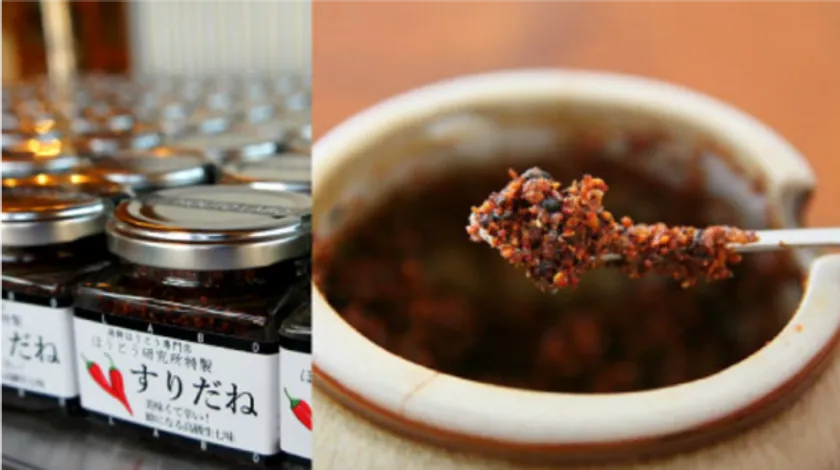 山梨の名産『すりだね』に上品なワインの香りを合わせた 辛味調味料"ワインパミス"入り『すりだね』発売