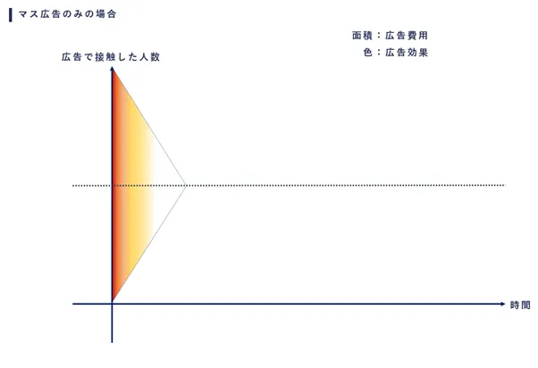 マス広告の場合、接触できる人数は多いですが、時間経過とともに徐々に効果が薄まり、短期間しか効果を持続させることができないという課題があります。さらにマス広告という施策自体が比較的大きな予算を必要とする課題もあり、これまで実施できない企業も多くありました。