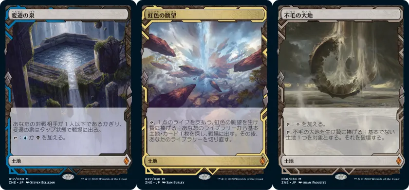かつてのセット『戦乱のゼンディカー』(2015年)、『ゲートウォッチの誓い』(2016年)にて収録され、大きな話題を呼んだ「Zendikar Expeditions」。その内容はマジック:ザ・ギャザリングの歴史の中でも特に強力な土地カードたちに特別なフレームおよびアートを施し、ブースターパック中に低確率で封入するというものでした。