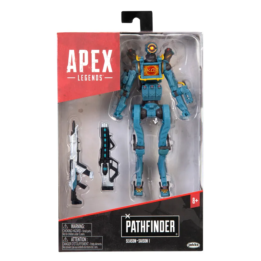 今回はその『Apex Legends』から「Wraith(レイス)」「Bloodhound(ブラッドハウンド)」「Pathfinder(パスファインダー)」の3体がアクションフィギュアになって、登場します。各キャラクターは25箇所が可動し、躍動的なポーズをとることが可能です。またそれぞれのキャラクターには武器が付属しており、よりゲームの世界観に近づけることができます。