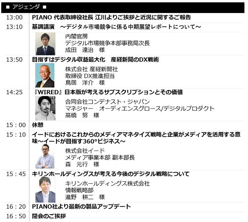 基調講演では、内閣官房 デジタル市場競争本部事務局よりゲスト・スピーカーをお招きして「デジタル市場競争に係る中期展望レポートについて」講演頂くほか、ユーザー企業事例紹介として豪華ゲスト4人より、各社のデジタル戦略を講演頂きます。