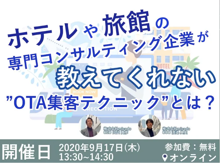 2020年9月17日に株式会社micadoが宿泊施設運営者向けにセミナーを開催します。