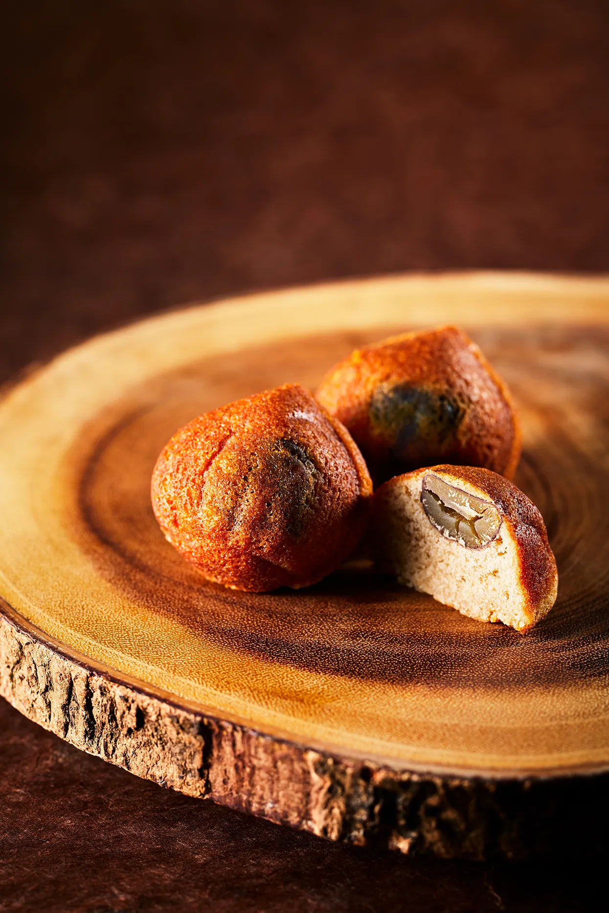 イタリア産のマロングラッセを練り込みラムマローネリキュールで香りづけした芳醇なガナッシュを、香ばしさが特徴のピーカンナッツの粒を練り込んだ生地で包んで焼き上げました。秋の夜長のお供にふさわしい、大人顔のお菓子です。