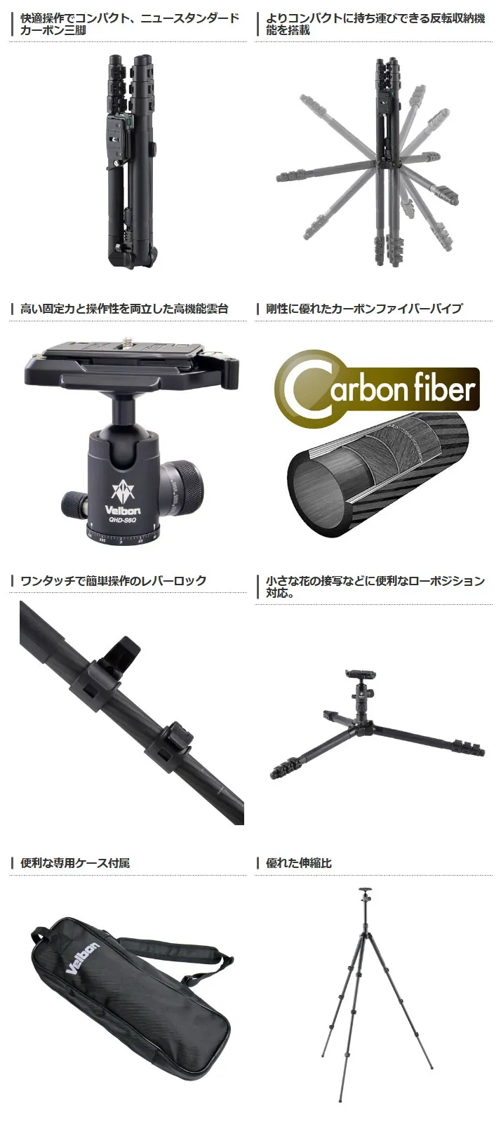 60年以上の歴史を誇る三脚ブランドVelbon(ベルボン)より脚を180度反転しコンパクトに収納できる「トラベルカーボン三脚」2種が新発売!
