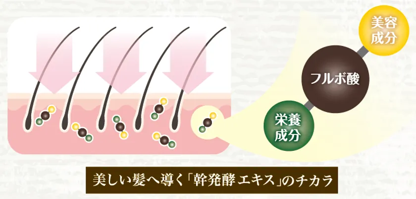 「幹発酵エキス」を構成する、フルボ酸・フミン酸は、森から川を経て海に運ばれ、海の健康にも重要な役割を果たしていますが、hmsの「幹発酵エキス」は、針葉樹のみから抽出されているため、動物の死骸や糞、重金属等が紛れる可能性はなく、抽出過程においても特許取得のオーガニック製法でつくられています。hmsは「幹発酵エキス」を配合することにより、頭皮を健全な状態にし、健康な美しい髪を育むことが期待できます。