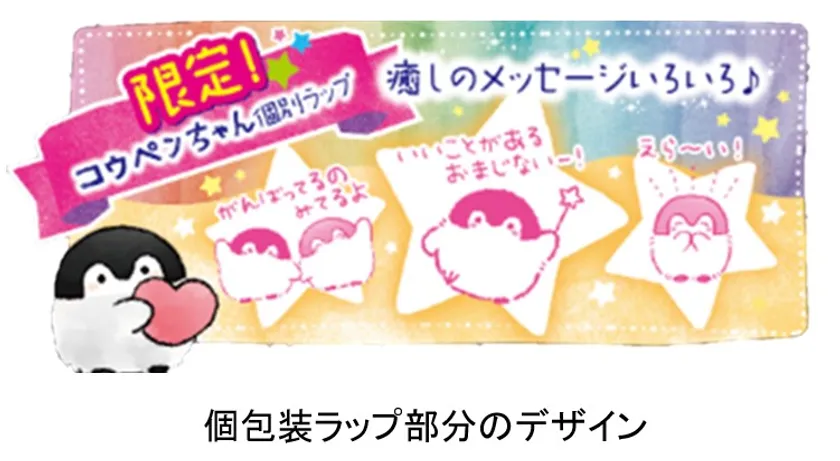 ・個包装のラップ部分には、コウペンちゃんからの癒しのメッセージをデザインしました。