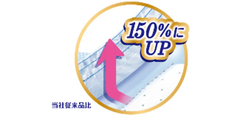 日本国内で最も高さのあるギャザーをサイドに搭載しました。高さは当社従来品比で150%にアップし、横モレをしっかり防ぎます。
