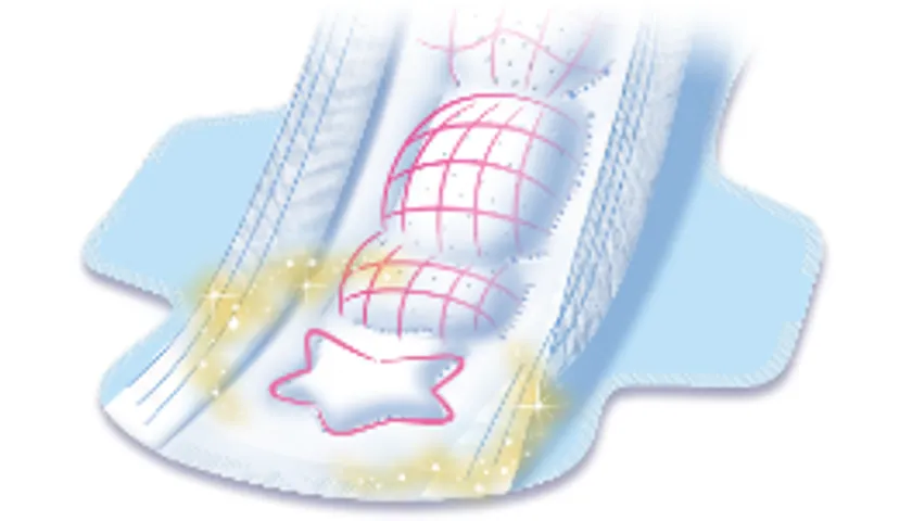 ナプキンの前側に搭載した星型の凹凸により、経血を吸収します。