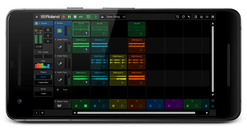 ローランドでは現在、さらに気軽に本格的な曲作りを行えるアプリ「Zenbeats」(2019年発表)を提供。スマートフォン、タブレットやパソコンなど、場所を選ばず、さまざまな環境でシームレスに音楽制作をお楽しみいただけます。
