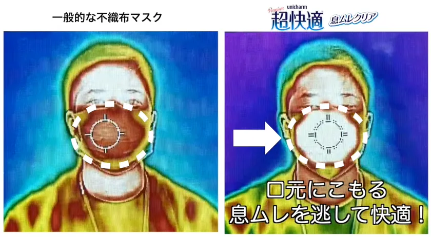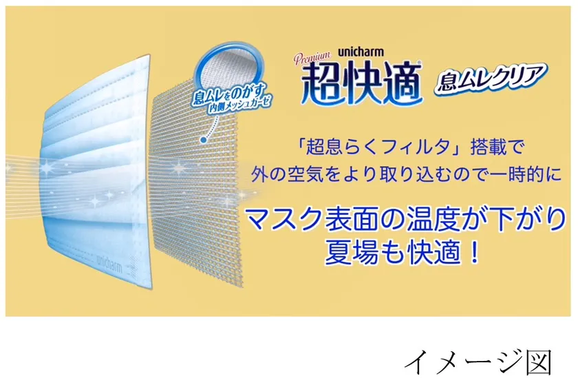 ユニ・チャーム株式会社(本社:東京都港区、代表取締役 社長執行役員:高原豪久)は、暑い時期のマスクのムレに焦点をあて、当社商品の中で最も通気性がよく熱がこもりにくい『超快適マスク 息ムレクリア』 をご紹介します。